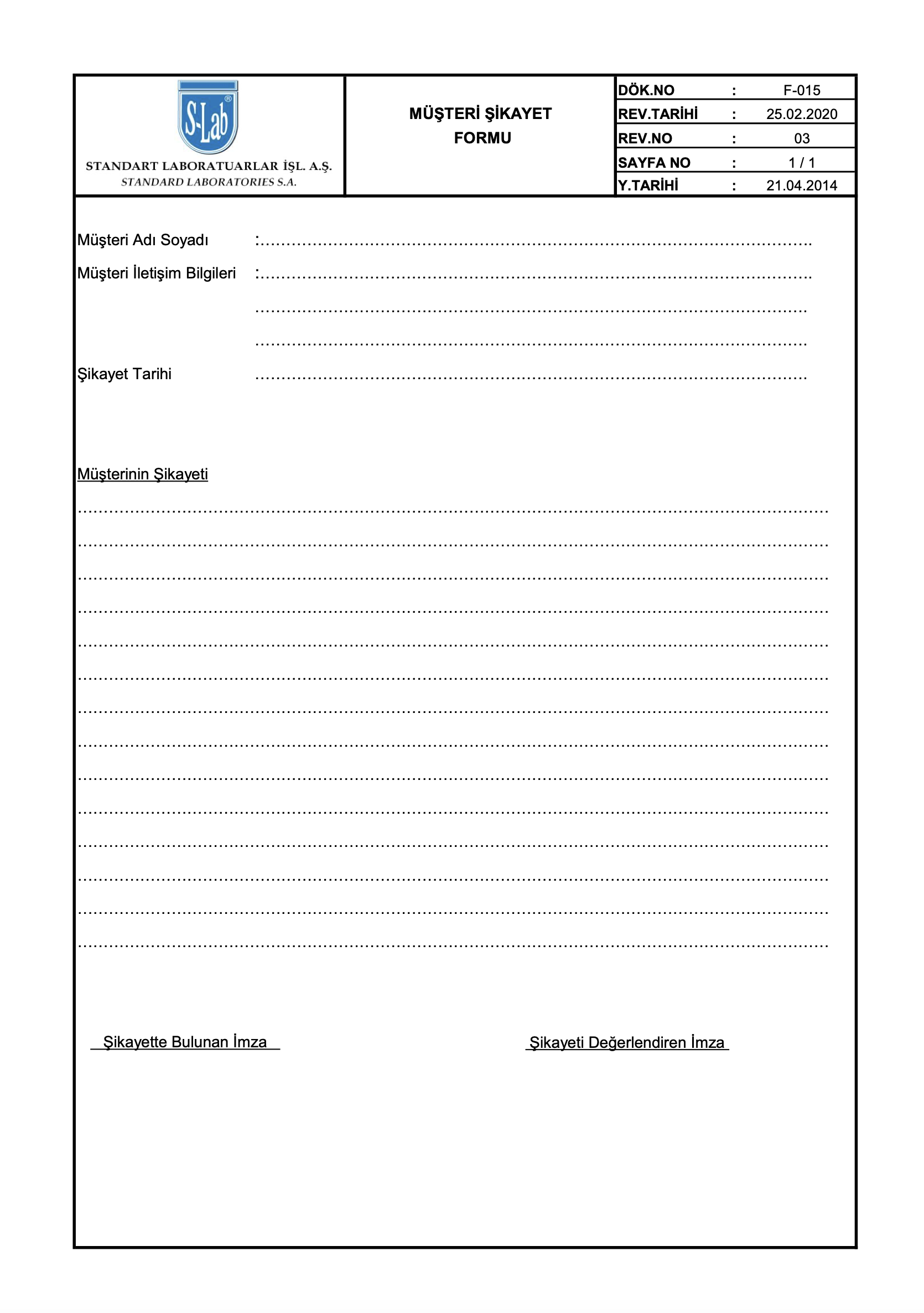 Müşteri Şikayet Formu